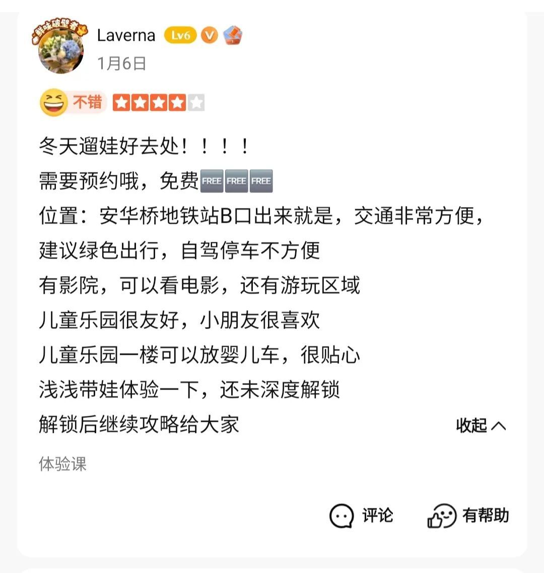 “儿童乐土一楼不错放婴儿车,很贴心……淡淡带娃体验一下,还未深度解锁。”