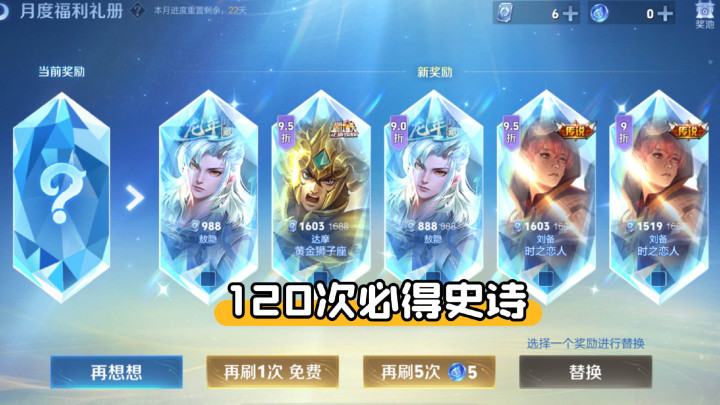 和最驱动的福利礼册雷同,玩家独一用回忆之证刷新,累计刷新120次,就不错必得一款史诗皮肤。