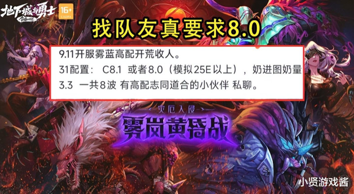 玩家不啻是说说汉典,而是的确按照8.0条件的,还真有不少团长把开采门槛定在8.1/8.0,模拟伤害25亿以上,奶进图奶量达到3.3,额外的离谱。这样高的门槛,臆想群众只好1个大号不错打了。