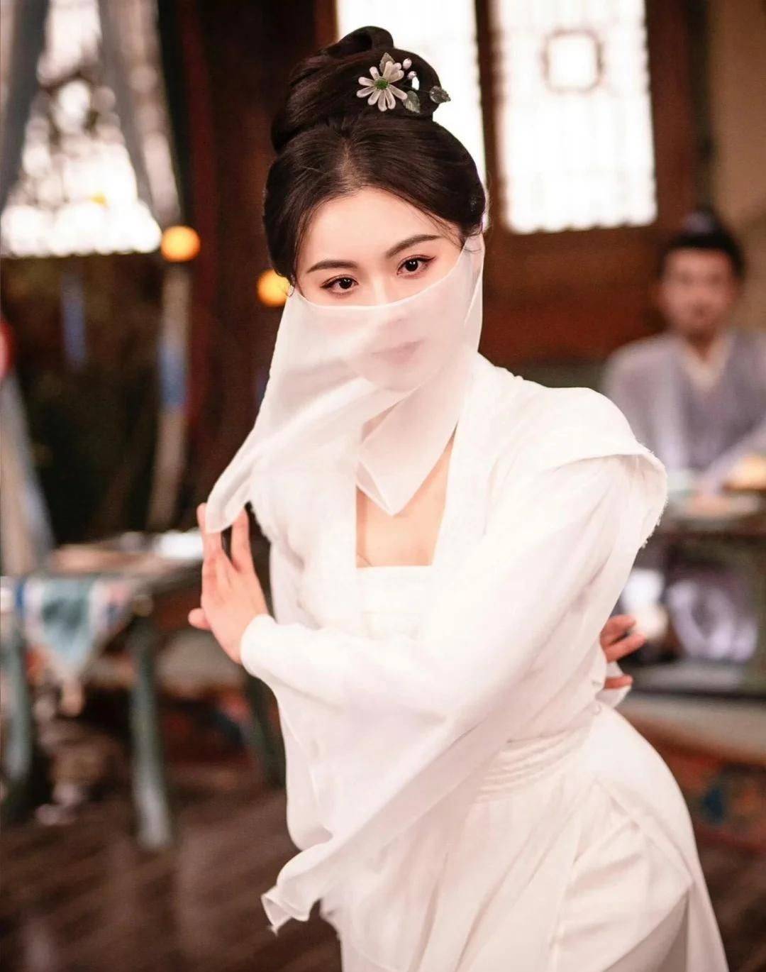 10. 孑然素白长裙覆上头纱,怀中轻揽琵琶,背后却赫然负着一柄冷光凛凛的长剑,刚柔软洽的造型精确击中了各人的审好意思神经。
