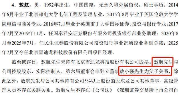 前几天,上市公司雪迪龙发布了一系列东说念主事变动,里头有个名字偷偷冒了头——礼聘敖航先生为公司非零丁董事。