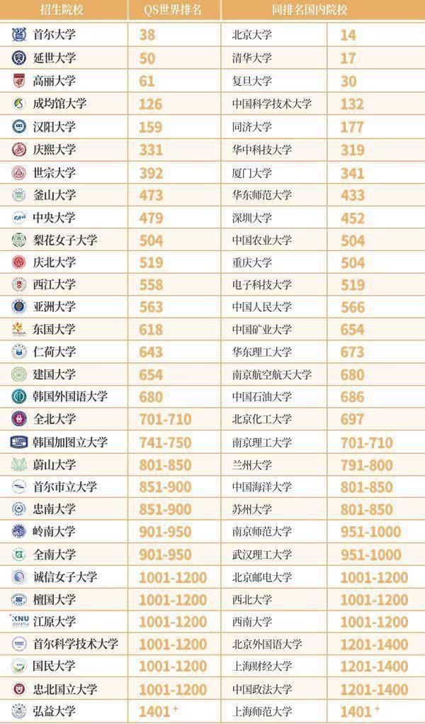 四、2026年QS世界大学排行中(大陆)韩高校对比