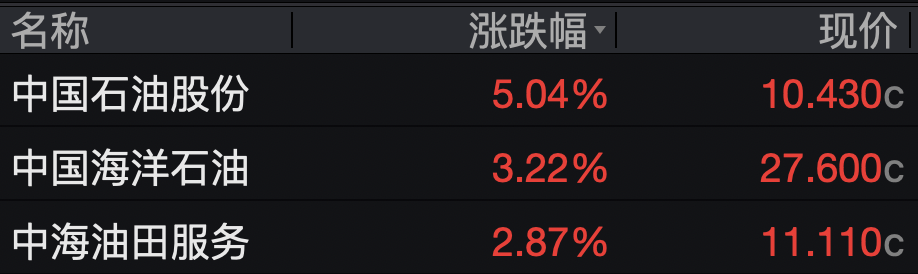 石油股逆势高潮,中国石油股份涨逾5%,中国海洋石油涨逾3%。