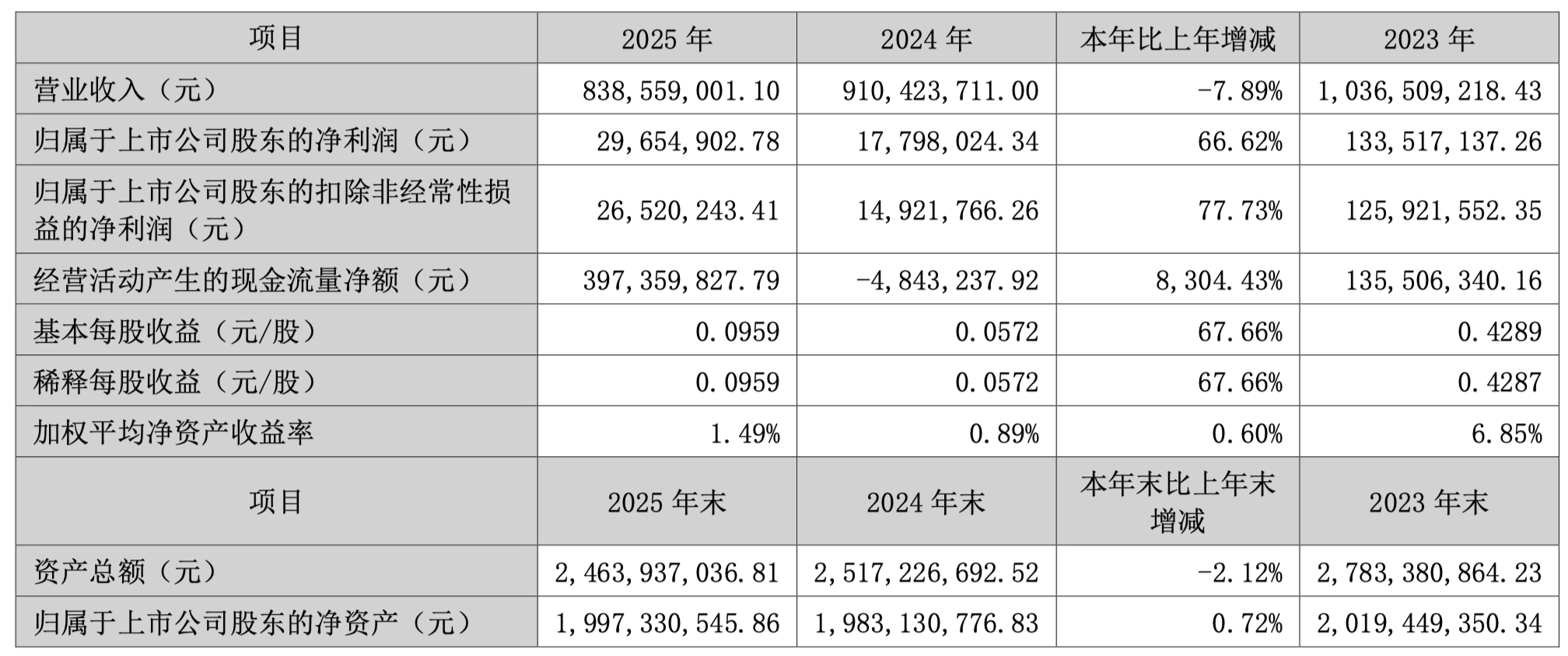 3月20日,全信股份(300447)发布2025年度叙述,公司实现交易收入8.39亿元,同比着落7.89%;归母净利润2965.49万元,同比增长66.62%。基本每股收益0.1元。