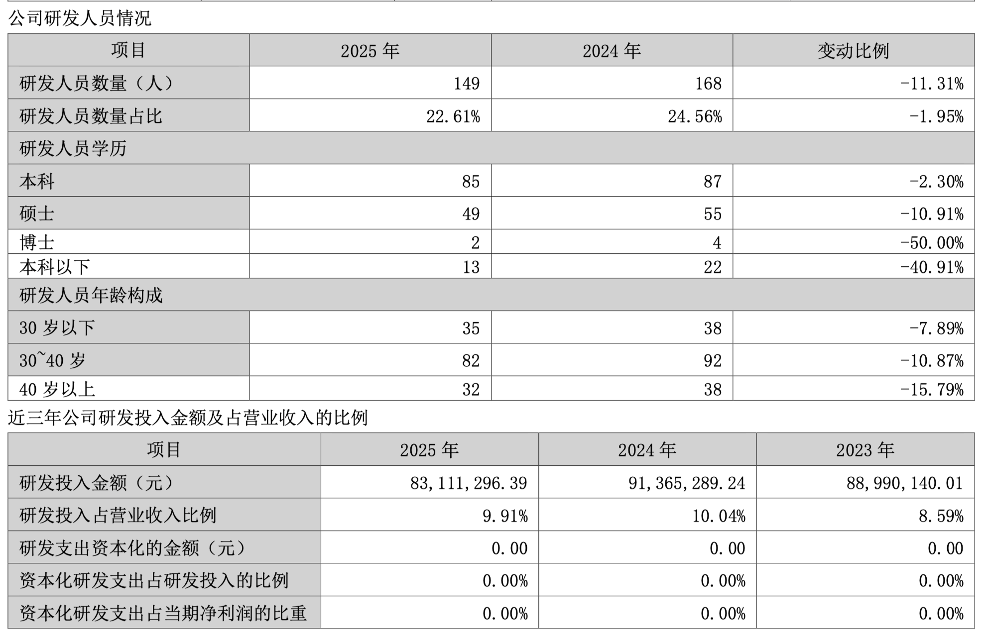 值得一提的是,全信股份的研发东说念主员有所减少,从2024年的168东说念主减少至2025年的149东说念主。同期,其研发进入金额也为2023年来最低,2025年进入研发金额为8311.13万元,2024年为9136.53万元,2023年为8899.01万元。