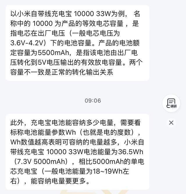 关于充电宝的容量问题,4月18日,华商报大风新闻记者通过网购平台小米旗舰店官方客服进行照拂,照拂界面自滚动出的先容中称,该款充电宝等效20000mAh,记者照拂东说念主工客服充电宝的容量时,对方回复称额定容量是12000mAh。