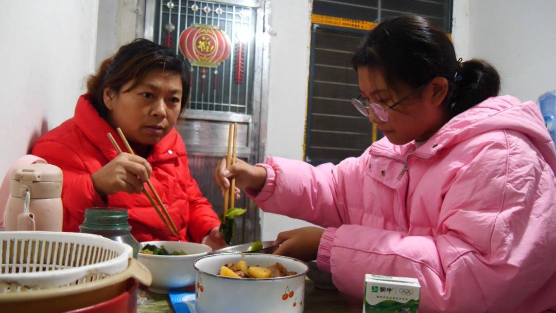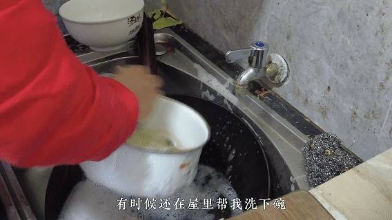 摸索着帮身旁双目失明的姆妈注射、喂药